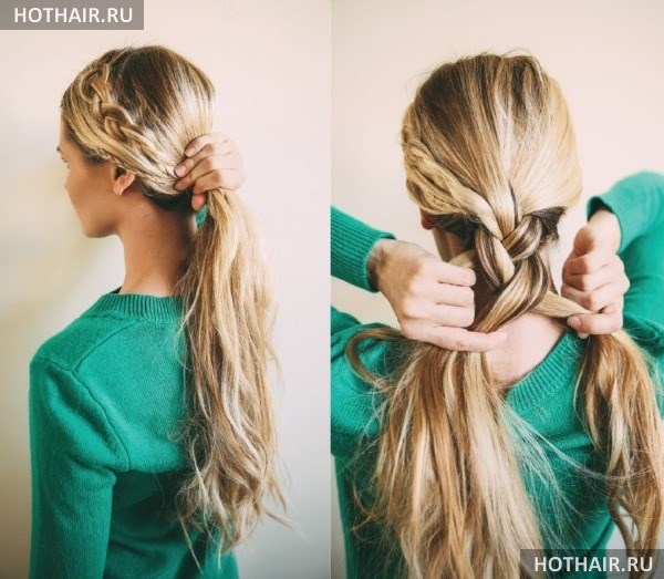 Нет ничего проще, чем выполнить хвост наоборот. Все, что вам нужно, это сделать обычный хвост, разделить волосы на макушке пополам и вывернуть хвост. У вас получится элегантная прическа на каждый день, а вот на торжественные мероприятия ее лучше не «носить», так как смотрится она слишком просто. Она, так же как и предыдущая укладка, подходит для овального типа лица, а вот для квадратного, треугольного, круглого или ромбовидного типа она совсем не подойдет, так как в данном случае у вас не получится выполнить объем на макушке и она раскроет все несовершенства вашей внешности.