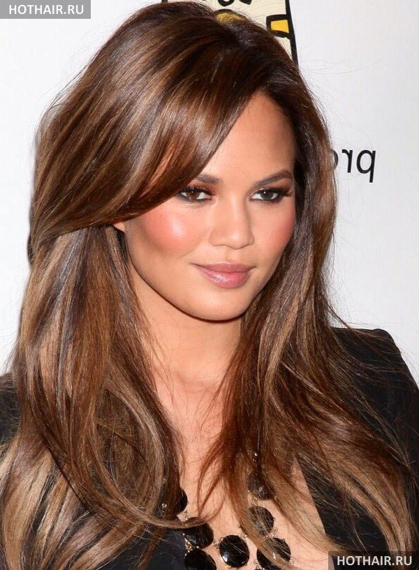 Идеальным решением для девушек теплого цветотипа будут локоны шоколадного оттенка. Именно он будет хорошо смотреться как с карими, так и с зелеными глазами, подчеркивая всю глубину их цвета. Отметим, что именно шоколадные тона волос помогут вам визуально избавиться от нескольких лет, даже в том случае, если ваш возраст миновал отметку в 50 лет.