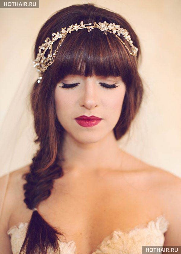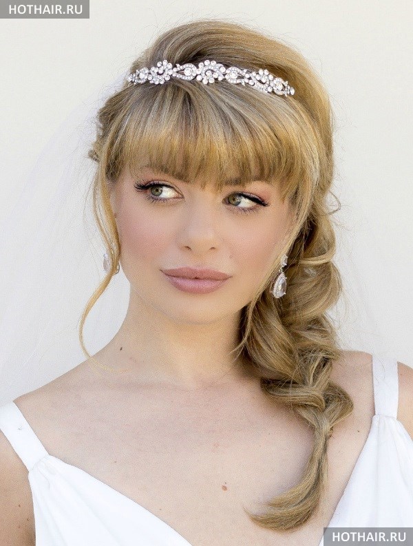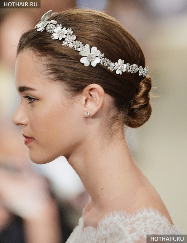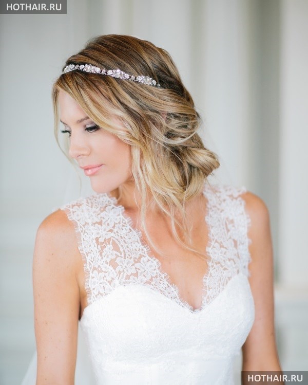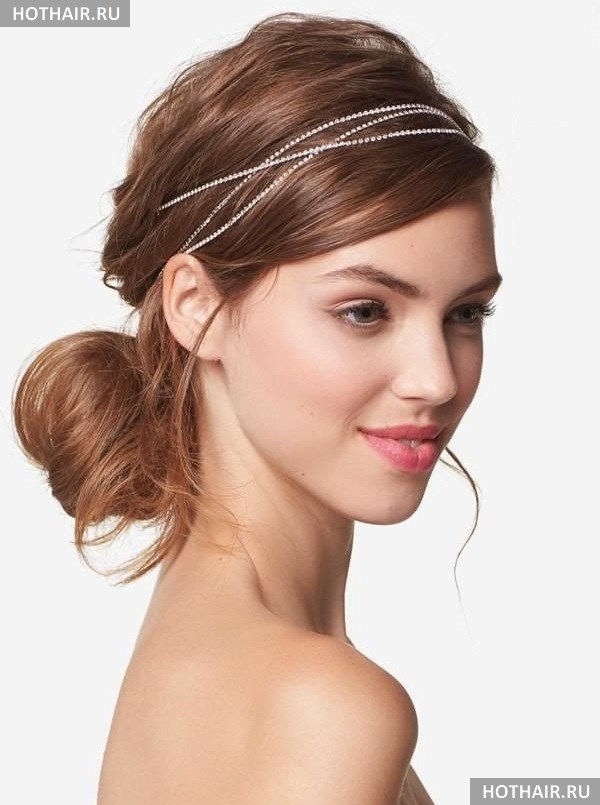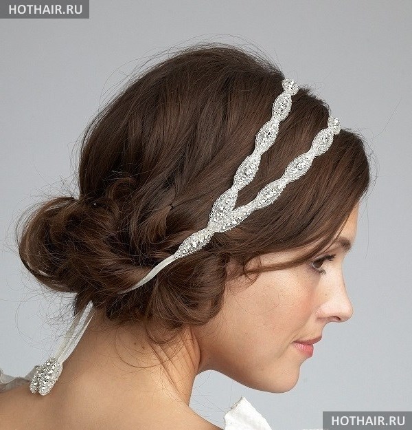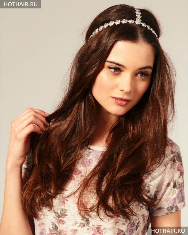 - Если вы делаете прическу с повязкой на середине лба, то данный аксессуар не должен быть выпуклым или иметь бусины в декоре.