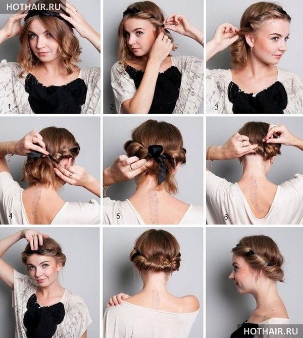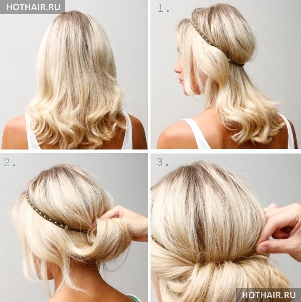 Прическу с повязкой – резинкой нужно делать следующим образом.