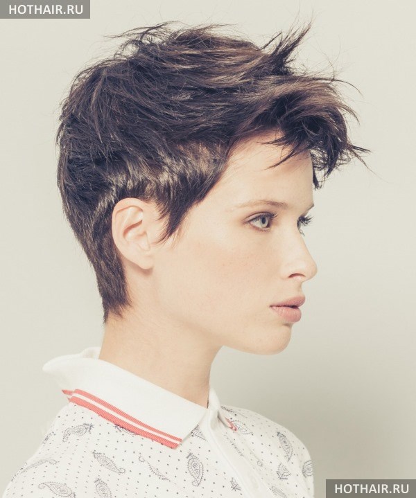 Если вы выполняете стрижку пикси слоями, то вам следует ее также оформить ультракороткой косой челкой и удлиненными прядями. Тогда получится современный дерзкий образ, который не останется незамеченным. Такую прическу вы можете не укладывать, так как она и без этого будет смотреться весьма привлекательно.