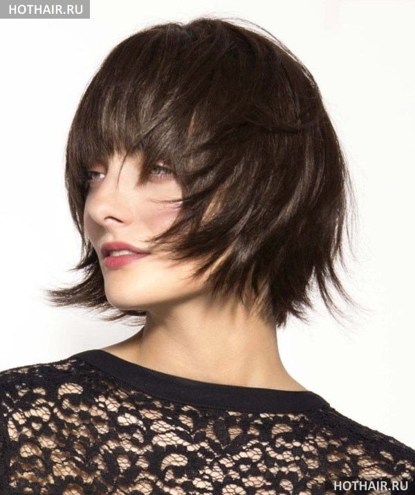 Пожалуй, это единственная слоистая стрижка, которая подходит на данную длину локонов. Она придаст локонам дополнительный объем и скроет недостатки внешности, при том условии, если вы будете следовать нашим советам по оформлению прически. Отметим, что такую стрижку вы можете укладывать разными способами. Допустимы даже кудри и высокие прически, так как такая длина позволяет экспериментировать с волосами.