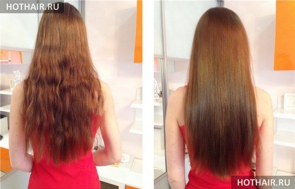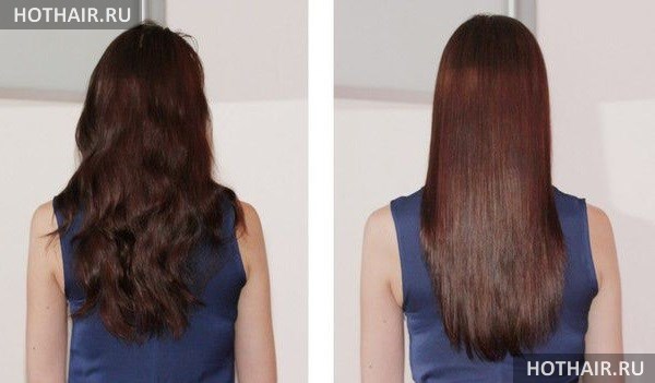 - Завершающий этап. На локоны наносится средство, которое закрепляет результат процедуры и после этого пряди высушиваются феном.