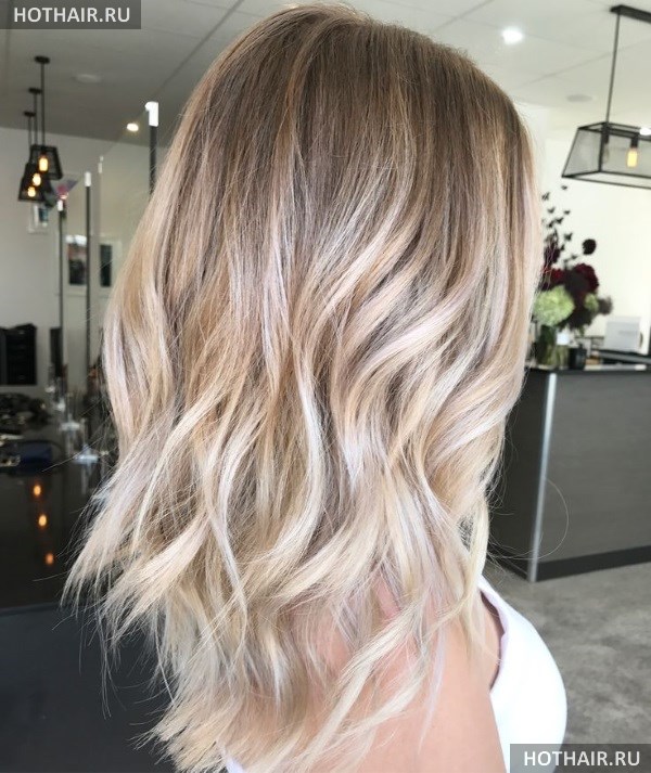 Светло-русого золотистого цвета волос добиваются калифорнийским мелированием. Эта услуга подразумевает под собой окрашивание прядей в золотые тона, тем самым прическа становится невероятно красивой и эффектной.