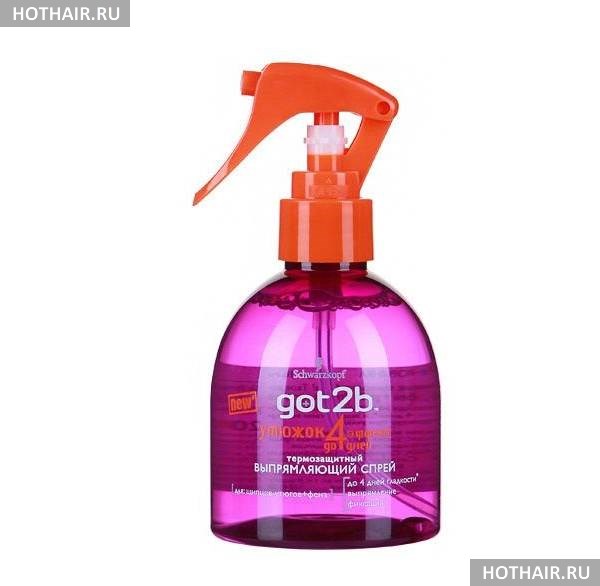 Вариантов термозащиты от бренда Got2b несколько. Спрей-выпрямитель Утюжок действует 4 суток, стоит от 400 руб, объем 200 мл.