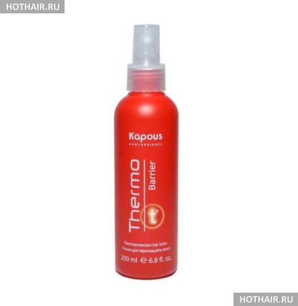 Например, у бренда Капус есть отличный термозащитный лосьон Thermo barrier, с его помощью можно эффективно ухаживать за волосами в домашних условиях. У продукта средняя степень фиксации прически, он улучшает скольжение пластин утюжка, работает как антистатик. Цена от 350 руб, объем 200 мл.
