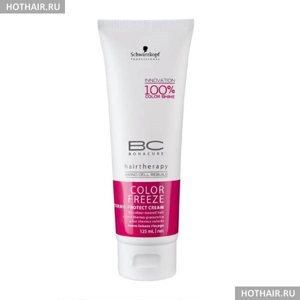 Продукция от бренда от Schwarzkopf - проверенная и всегда работает безотказно, восстанавливает волосы, снижает риск повреждений от термоукладки. Востребованный продукт Bonacure Color Freeze Thermo Protect Cream предназначен для спасения окрашенных волос при создании укладки плойкой, агрессивной сушке феном.