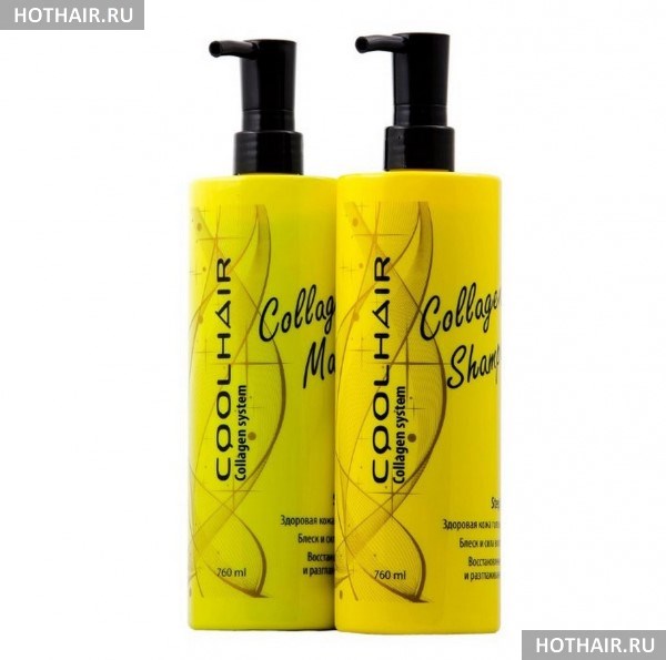 В комплекс Coolhair collagen system входит маска и шампунь. 2 пузырька по 760 мл, которые продаются в наборе, стоят 4000 руб. Хотя в зависимости от региона цена может незначительно отличаться. Итак, нам понадобится система CoolHair Collagen System, в ней 2 продукта и каждый будет задействован.