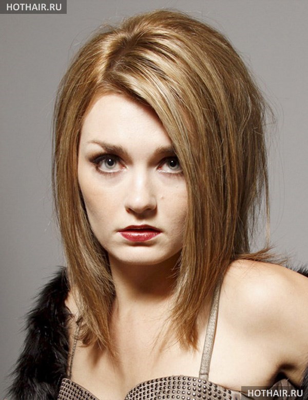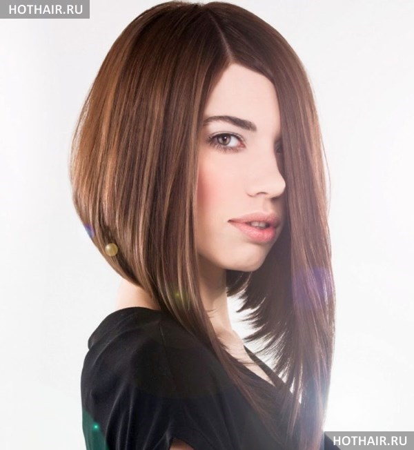 Самая модная стрижка сезона – это, конечно, удлиненный боб. Она будет популярна еще многие годы благодаря необычному варианту своего исполнения. Эта стрижка выглядит очень оригинально – спереди пряди волос длинные, сзади короткие. Причем делается все это под определенным углом. Вы сами можете решить, плавный или резкий будет переход, в зависимости от вашего стиля и предпочтений. Такая стрижка лучше всего подойдет женщинам с круглым лицом, скроет все недостатки, придаст экстравагантность и шарм.