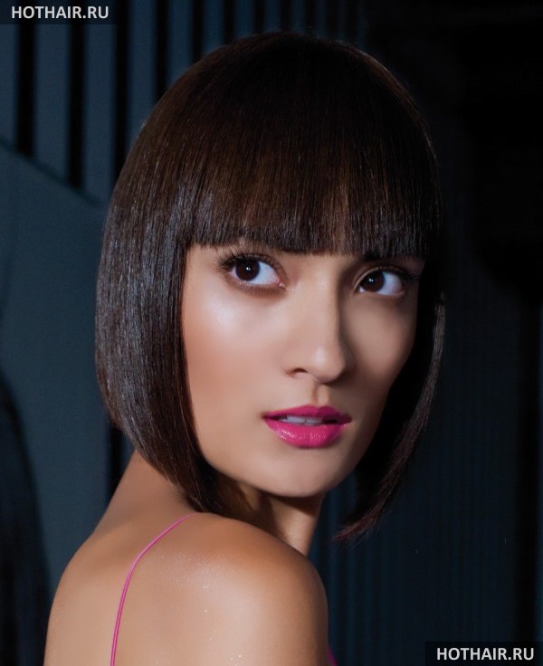 Прямая челка может быть как короткой, так и длинной. Главное – не делать ее очень густой, так как она «отнимет» объем прически. Вы даже можете сделать ее фигурной, но она должна быть ровным срезом.