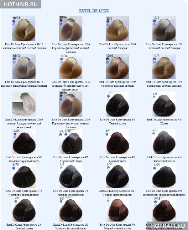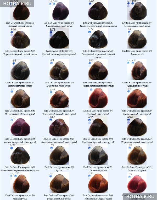 Палитра краски Estel Sense de Luxe включает в себя основную гамму, которая состоит из 57 оттенков и гамму Extra Red. Последний вариант состоит из ярких креативных тонов.