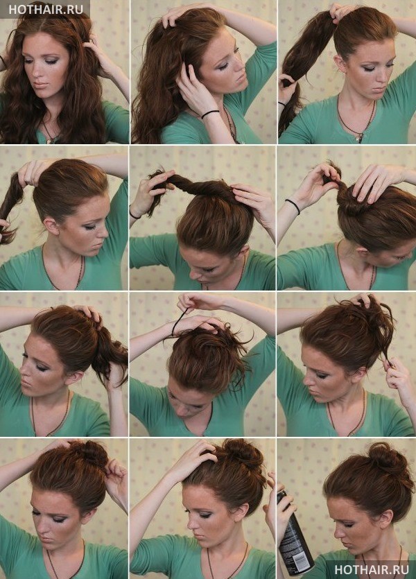 Виды пучков на средние волосы