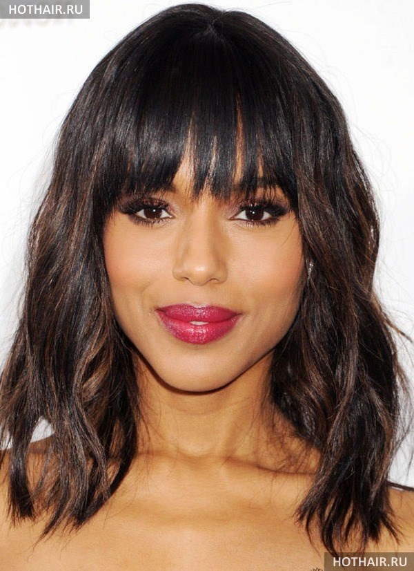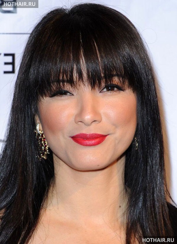 Следует знать, что для данного типа лица категорически не подходят прямые гутые длинные челки. Именно они акцентируют внимание на скулах и визуально заостряют подбородок, что негативно отражается на внешнем виде. Однако, если вы привыкли именно к такому варианту этого элемента, челку можно разрядить.