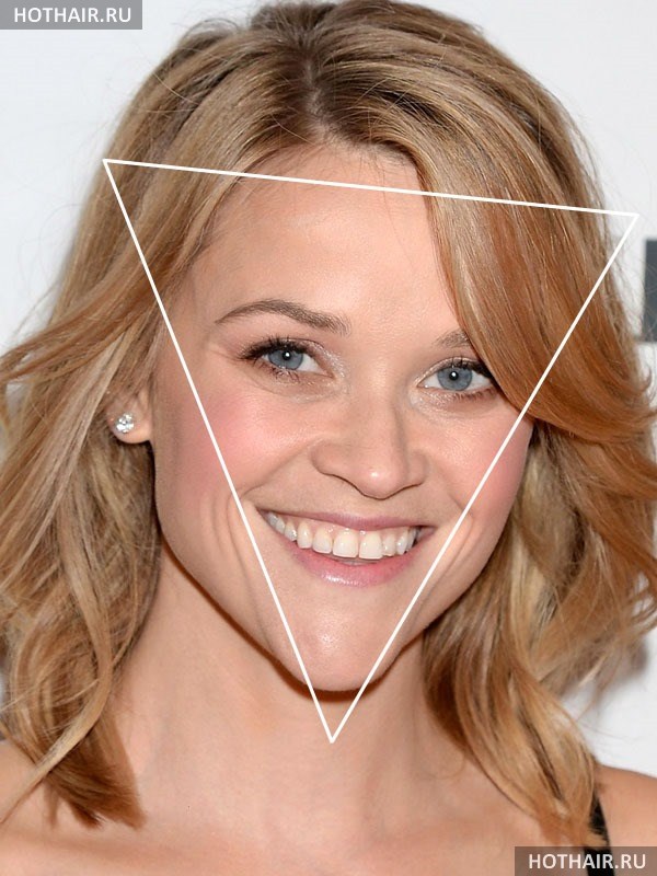 Для треугольного типа лица не рекомендуется выполнять классическое каре, а вот удлиненный вариант такой прически будет идеально смотреться в данном случае. Оформить ее можно длинной косой челкой, на конце сливающейся с прической. Следует помнить, что стрижка не должны иметь ровных срезов. Следует выполнить филировку или градуирование и тогда прическа улучшит внешний вид, а не наоборот.